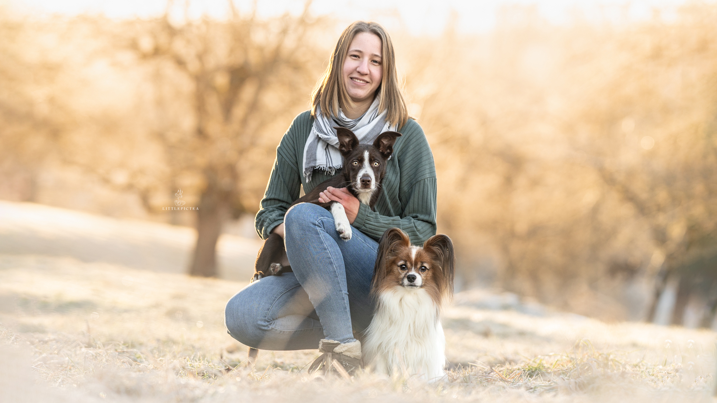 Ich bin Tanea, arbeite in Vollzeit als Hundefotografin im Fotostudio und lebe mit meinen eigenen drei Hunden zusammen.